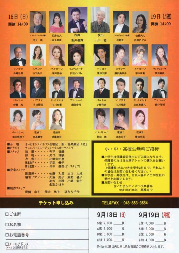 | W.A.モーツァルト『コジ・ファン・トゥッテ』 ドラベッラ役 2015年4月3日(金)14:00開演 2015年4月4日(土)14:00開演 横浜みなとみらいホール 小ホール 全席指定 ¥4,500 指揮/チェンバロ:田島亘祥 演出:今井伸昭 フィオルディリージ:針生美智子 ドラベラ:堀万里絵 フェランド:大川信之 グリエルモ:増原英也 デスピーナ:鷲尾麻衣 ドン・アルフォンソ:鹿野由之 ピアノ:朴令鈴 |