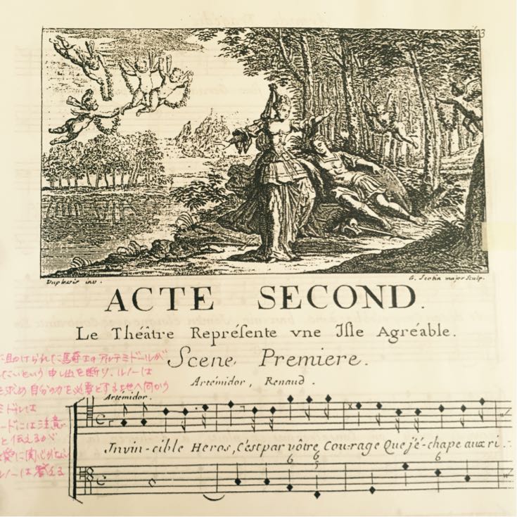 クラシックなのにモダンだって! 2015/05/27(Wed) [音楽] Comment (1) こんにちは。 夏のようなお日様が毎日ぽかぽかですね。 そろそろアルミードのリハーサルも本格的に始まります。 暗譜、暗譜、暗譜!!! そういえば、バロックの方々とお話して面白いと感じた事がありました。 古典派〜近現代あたりのクラシック音楽の事を【モダン】と言って区別することもあるみたいです。 バロック以外のクラシック音楽=モダン 例えばイタリア作品系ならモーツァルトとか、ヴェルディとか、マスカーニとか。 クラシック音楽って、そもそも古いものでしょ? って考えがそもそも念頭にあるので、それを聞いた時は「変なの〜」と思いました。 確かに歌も歌唱法とか細かく違ったりするんだろうし、楽譜の書き方とか違ったりもするけどね。 その言葉を言ったのは、楽器の方だったんです。 で、しっくりきました。 楽器がそもそも違うんですね。 私は詳しく知らないので確かな事は言えませんが、 例えばヴァイオリンには顎あてが無いんだそうです。 ヴァイオリニストって、顎で楽器挟んでるの想像するでしょ? バロックの方は、肩に置いて演奏していました。 そう考えると、 チェンバロだって、ピアノと鍵盤の色違うし、 フルートだって、黒いし ヴィオラ・ダ・ガンバだって、床にたてるピンないし ほうほう! そこが区別のラインなのね。 と、自己解決したまりえでありました。 ★★★ さてさて 来月本番のアルミード 見るだけでも楽しい、バロック楽器でのライブです! 分かりやすいようにお話を挟みつつ、演奏します。 下の写真は私が実際に使っている楽譜です。 音符の形が面白いですよね。 ひし形。 省スペースで作られた楽譜は小節が2段にまたがっていたり、「あれ??この小節1拍多い?」と思っていたら他のパートの最後の音も一緒に詰め込まれていたり、休止符が申し訳ないくらい小さかったり。 現代譜になれた私には非常に読みづらいのですが、ついている挿絵がとっても素敵! (私のメモ書きが入っているのは気にしないで下さい) 1幕。 アルミードが侍女達と話しているシーンですね。 2幕 このオペラで一番有名と言っても過言でない、2幕5場アルミードのアリアのシーン。 魔法で眠らせたルノーを殺そうとします。 3幕 アルミードが色々呼び出していますね。 よりによって宿敵のルノーを好きになっちゃって、どうしましょう。 悪魔よ助けて〜!!!という感じ。 5幕 魔法の解けたルノーが去って行き、アルミードは絶望して宮殿を破壊し去って行く。。。 最後の最後はアルミードの嘆きのアリアで終わります。 はぁ、満腹な作品です。 宜しければ是非お出かけくださいね! ヨーロッパ 古の響き Harmonia grave e soave J-B.リュリ『アルミード』 2015年 6月12日(金) 19:30開演(18:30開場) 南青山MANDALA(東京メトロ銀座線「外苑前」駅下車 徒歩5分) チャージ料 ¥4,500(1ドリンクつき) 指揮/クラヴサン:根本卓也 ヴァイオリン:阿部まりこ ヴァイオリン:須賀麻里江 バス・ド・ヴィオール:中山真一 アルミード:堀万里絵 ルノー:安冨泰一郎 イドラオ/ユバルド:加藤宏隆 シドニー:東伸美 フェニース:樋口麻理子 【お問い合わせ・お申し込み先】 アルモニア・グラーヴェ・エ・ソアーヴェ 070−1376−2573 harmoniagraveesoave@hotmail.com 【チケットお取り扱い】 南青山マンダラ 店頭販売(受付時16〜22時) HP予約 http://www.mandala.gr.jp/aoyama.html 私まで直接ご連絡でもかまいません。 Contact から、または info@horimarie.com までお気軽にお問い合わせください。 ほりまりえ