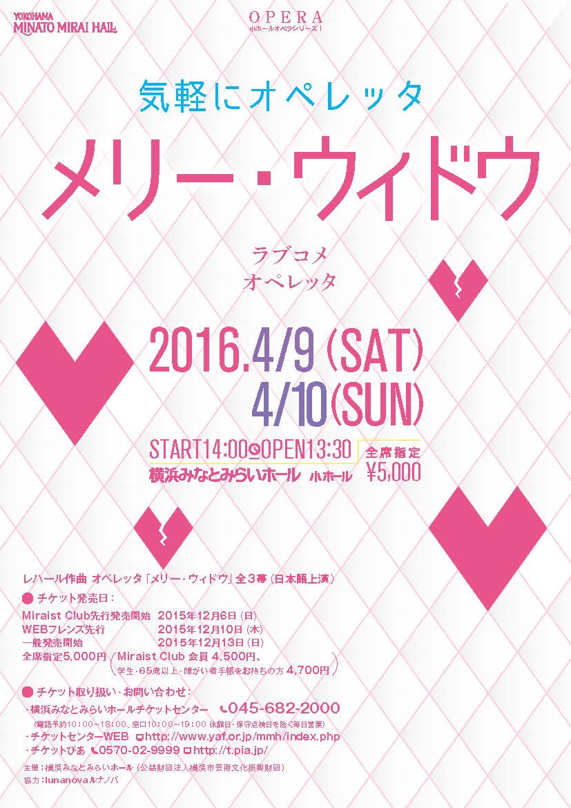 週末はメリーウィドウ 2016/04/06(Wed) [音楽] Comment (0) いよいよ今週末はメリーウィドウ♪遠い道のりのみなとみらいまで通って、劇団員のような稽古ライフを送っていました。(劇団の例えはサンブリオッシュ役の野村くんから拝借です)ソロがないって、歌えないフラストレーションも溜まりますが、バシバシ歌うみなさんの歌声に癒されながら、日々を送っております!とっても贅沢なキャストで、稽古場に行くだけで楽しい。今日は通し稽古です。 ほりまりえ