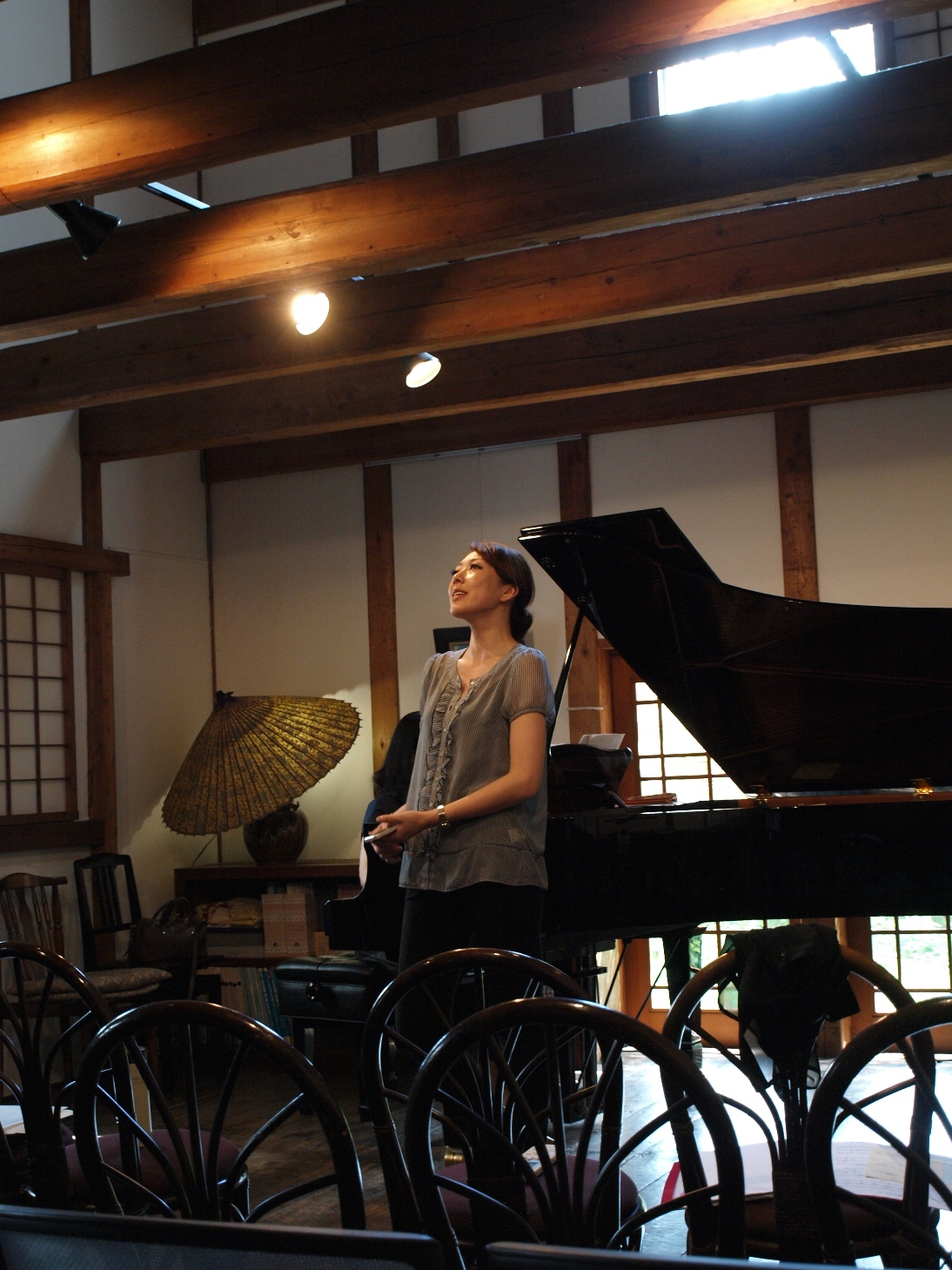 リサイタル反省会 2014/08/09(Sat) [歌いました☆] Comment (0) 気付けば1週間。。。 すっかり夏バテモードに。 都内に戻って、使った楽譜を整理して、新たな譜読みの楽譜をだして、お引越しの手配をして。。。 何だかんだと時間が経っていしまいましたが、ちょっと先週のコンサートの写真などを。 今回の会場は 2年前にもお世話になった『瑳蔵』 お蔵を改装した喫茶店で、グランドピアノが常設されています。 私の最初の声楽の先生とのご縁で、今回もお邪魔することになりました。 立派な梁にスポットライトがついた、ジャパニーズモダン(というのだろうか…?)な素敵空間なのです。 音の鳴りを聞くのに 「ちょっとマリちゃん弾いてみて~」 と任命されました。 本番の様子はこんな感じ。 とっても有り難い事に、両日共に会場いっぱいのお客様にお越しいただき、感謝感謝です。 空調をフルパワーにしていたのですが、両日共にかなり暑い日で、お客様にはご迷惑をおかけしたことと思います。 2日間同じ衣裳を着れないほど、全力で演奏しましたのでご容赦くださいね。 もう一着はブルーのドレスだったのですが、写真がなかったのでまた今度。 今回の演奏会では、ドイツリートという最大の課題がありました。 シューマン『女の愛と生涯』より抜粋で5曲を。 これまでに集中してドイツ物を演奏する機会がありませんでしたので、もう最初は…大変でした。 笑っちゃうくらい歌えなくて、落ち込んで、でもどんどん日は迫ってきて…。 でも、ふっと曲と仲良くなれそうな瞬間があって、少し光が見えてきたり。 お客様にはどんな風に伝わりましたでしょうか。 最近は演奏の機会がないと中々山形にも帰れていませんが、年に一度のこのコンサートでおばあちゃんにも演奏を聞いてもらえるし。 お世話になった方々に笑顔で帰って頂けるので嬉しいですね。 ただ、来年は。。。 もう少し涼しい時期にしてみようかな。 また次回もがんばります! ほりまりえ PR