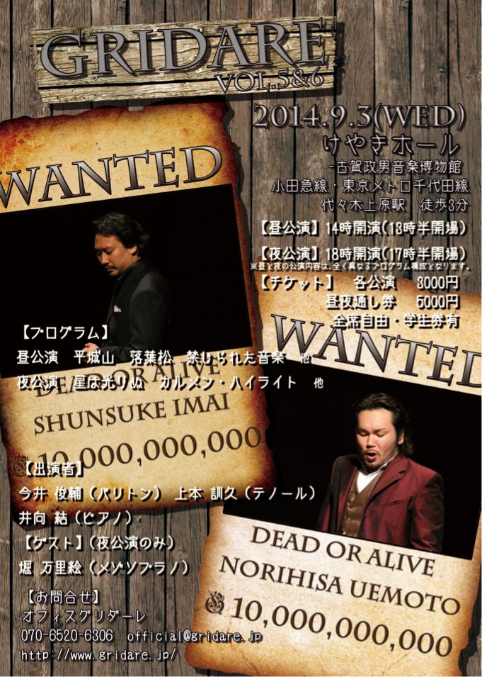ゲスト出演 2014/08/20(Wed) [お知らせ] Comment (0) 暑いですね。広島での土砂災害や栃木での大雨警報。。。朝から悲しい気持ちになりました。。。そんな中、本日お引越しです。チケット等でやりとりさせて頂いているみなさま。出来るだけ早急に対応させていただきますので、ちょこっとだけお待ちくださいね。荷物を業者さんに預けて移動なう。宣伝します。グリダーレ公演2014年9月3日(水)18:00けやきホール一般¥3,000肉食系ユニット グリダーレ上本訓久&今井俊輔ゲストとして出演します♪カルメンのハイライトです。原語で熱く激しく、グリダーレ(叫ぶ)しようと思います!!お求めは info@horimarie.com までブログhomeのメールフォームからもお気軽にどうぞ♪それでは、お引越しの続きに!! ほりまりえ PR