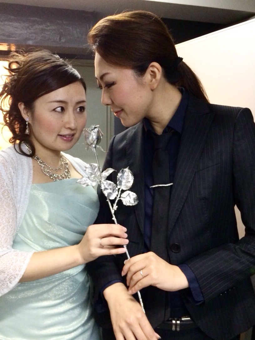 女子会 キアッキエローネ おひらき 2014/10/13(Mon) [歌いました☆] Comment (1) キアッキエローネ 女子会コンサート、無事おひらきとなりました。たくさんのご来場ありがとうございました!若手の豪華メンバーで、稽古も本番前の楽屋も、そして打ち上げもワイワイと♡楽しすぎる本番でした♪♪♪メインの歌もそれぞれの個性が120%発揮されるプログラムで、アンサンブルも楽しかったし、打ち上げのご飯もお酒も美味しかったし。シリーズ化にならないかしら★今回初めてお披露目しました、ばらの騎士の"献呈の二重唱"まだまだ納得いかない部分もありますが、ゾフィー役のまおちゃんも可愛くて素敵で、「今度はフィナーレの三重唱をやりたいねー」と話していました。銀のバラは、ピアノのりんりんさんの私物でございます♡さてさて、明日は台風とともに山形へ向かわねば。。。15日に、山形市立第十小学校の創立記念コンサートで、たっぷり演奏させていただく予定です。ちょっと…交通状況が心配ですよね。。以前(台風だったかな??)線路に暴風で木が倒れて、新幹線に7時間閉じ込められた挙句に最後まで動かずバスによる振替輸送…という出来事がありました。移動は午後からなので、何とか落ち着いていますように。 ほりまりえ PR