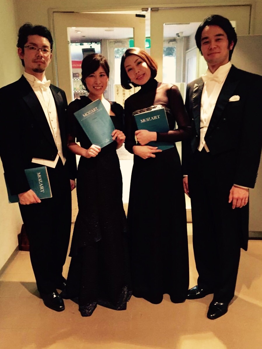 3.11を忘れない モーツァルトレクイエム 2016/03/14(Mon) [歌いました☆] Comment (0) 今年2つ目のモーツァルト『レクイエム』が終了しました。 たいへん大きなイベントの最後の最後のオーケストラ大コンサート。 それぞれの合唱団のステージ モーツァルト『レクイエム』 ふるさとの四季 シベリウス『フィンランディア』 ベートーヴェン『第九』 と、盛りだくさんなプログラムでした。 出演者もですが、ご来場のお客樣方も音楽に満たされてお腹いっぱいになったことでしょう! プログラム最後の第九では、大先輩のソリストさん方が演奏されました。 ステージ袖で、こっそりとお勉強させていただきました。 スデージはこんな感じだったそうです。 (主催の方より拝借しつれいします。) 内声パートは、和声のキーになる音を歌う事が多いので、ここぞ!という時に急にやる気を出します。 主題が移り変わっていく音楽も素敵なのです。 タクトを振るのは、マエストラ岸本祐有乃さん! 私は真剣なまなざしを横目でチラ見しながら歌います。 モツレクソリストさんたちと。 二期会の研修所からのおつきあい★バリトン古澤利人さん キラキラで上品な歌声、声も中身も素敵なソプラノ飯島典子さん とっても若い(びっくりした)爽やかボイス!期待のテノール佐藤圭さん そして、なんだか顔が丸くなった気がするわたし、堀万里絵です。 今回は東日本大震災の鎮魂歌としての歌唱でしたので、シースルーのタートルネックを着用したのです。首までスッポリ黒だから、ほっぺが丸々と強調されているだけですよね。 ……たぶん。 今回の企画に関わった皆様に、この場をかりてお礼申し上げます。 このような大きなイベントを毎年企画運営なさるのは、とても大変なことだと思います。 ですが、また来年もその先もずっと、この会が続いて行く事、みなさまが音楽で笑顔になれることを願っています。 ほりまりえ PR
