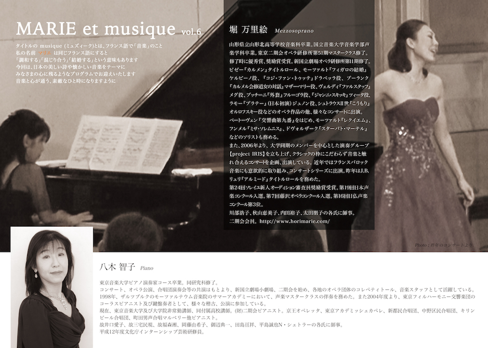 MARIE et musique vol.6 堀万里絵メゾソプラノリサイタル