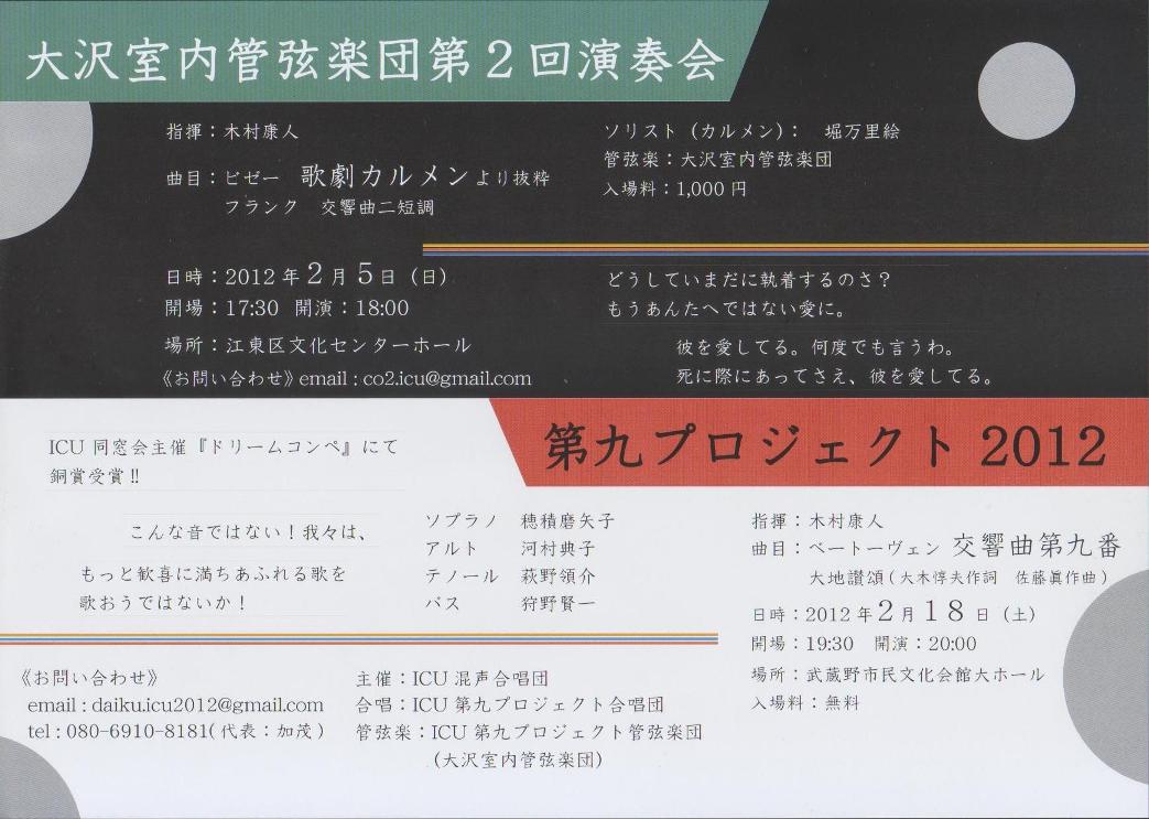 舞台でお稽古 2012/02/04(Sat) [音楽] Comment (1) 大沢室内管弦楽団演奏会『カルメン』より抜粋です♪ 本日は会場でのお稽古でした。 先日のオケ合わせより断然迫力が増したオケの皆様の演奏。 あの時聞いた元気な音が、とっても素敵に会場に響いていました。 凄い! 私も頑張らねば! (最近コレばっかり言ってます。。。 頑張ってはいるつもりなのですが。。。) 明日はお客様に楽しんで頂ける演奏をしたいと思います♪ 私も楽しんで歌います♪ 今回のカルメンは抜粋ですが、構成はオリジナル。 オペラ『カルメン』の美味しいとこ取りでおおくりします☆ そしてフランクの交響曲。 私はまだ拝聴していないので、明日聞けるのが楽しみです。 大沢室内管弦楽団第2回演奏会 2012年2月5日(日) 18:00開演 (17:30開場) @江東区文化センター ホール ¥1,000 (自由席) 指揮:木村康人 管弦楽:大沢室内管弦楽団 ソリスト:堀万里絵 【曲目】 ビゼー:『カルメン』より 抜粋 フランク:交響曲ニ短調 お時間ありましたら是非お越し下さい☆ ほりまりえ PR