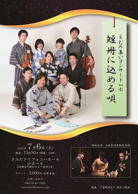 CD出しますよー 2013/06/28(Fri) [お知らせ] Comment (0) と、いいましてもソロとかじゃございません。 Mの集いのCDを7月6日のコンサートで発売することになりました。 今回で7回目を迎えるM集(えむつど)のコンサート。 これまでの演奏から、えむつどカラー溢れる選曲で、CDを制作しました。 第7回コンサートのプログラムからも選曲。 稽古でのひとコマ。 こんなまったりな感じですが、録音作業中です。 床に座って、ゆったりレコーディング。 裏話としましては、最初立ってしっかり歌っていたものの、 「このノリじゃない!」 と、座りだす歌隊。 この写真は楽器隊側からのパチリですね。 さてさて、なんの曲でしょうか。 聴いてからのお楽しみです♪ オールアンサンブル! 楽しい系から、涙ポロリ系まで。 いままで沢山のM(musician)が出演してきたえむつど。 どの曲も素敵です。 そして、ヘッドホン推奨ですw お値段は1000円。 これを聴けば、えむつどの何たるかが丸分かりの一枚です♪ 先日の歌隊セッションの後に腹ごしらえ。 Mつどを応援してくださるM様(えむつどだけに)からのご厚意で、お腹一杯頂きました! 満腹です☆ ごちそうさまでした! Mのメンバーは本当に個性豊かで愉快キャラばかり。 音楽はしっかり。 遊びもしっかり。 この日は合わせの合間に、バレーボールもどきに白熱し、翌日筋肉痛になりました。。。 次回は洋楽器と、そして最後に今回のスペシャルゲスト、和楽器の『独楽』さんとの最終合わせです。 あぁ、楽しみだ☆ お席は残りわずかです。 ご検討中の方はお早めに♪ ほりまりえ PR