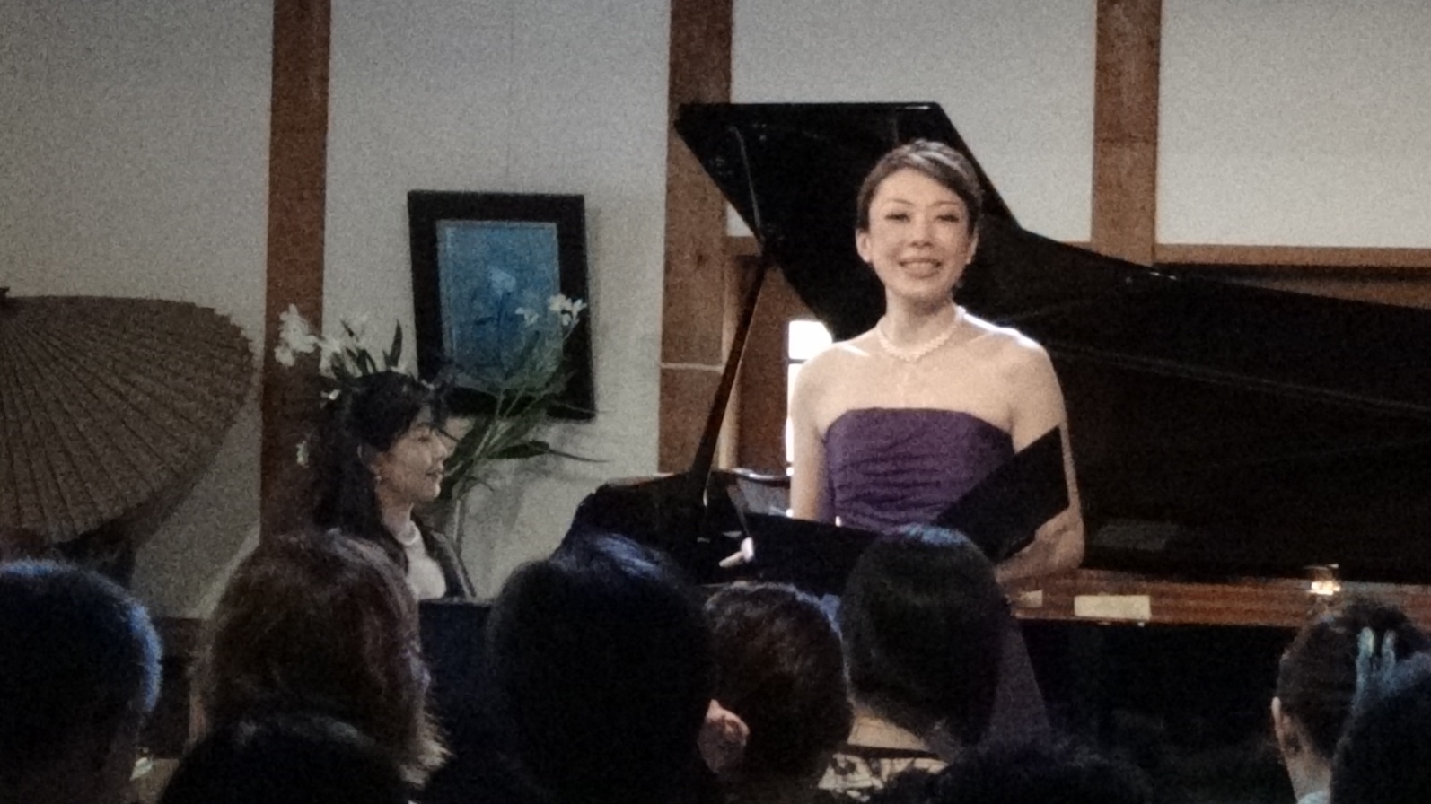 リサイタル反省会 2014/08/09(Sat) [歌いました☆] Comment (0) 気付けば1週間。。。 すっかり夏バテモードに。 都内に戻って、使った楽譜を整理して、新たな譜読みの楽譜をだして、お引越しの手配をして。。。 何だかんだと時間が経っていしまいましたが、ちょっと先週のコンサートの写真などを。 今回の会場は 2年前にもお世話になった『瑳蔵』 お蔵を改装した喫茶店で、グランドピアノが常設されています。 私の最初の声楽の先生とのご縁で、今回もお邪魔することになりました。 立派な梁にスポットライトがついた、ジャパニーズモダン(というのだろうか…?)な素敵空間なのです。 音の鳴りを聞くのに 「ちょっとマリちゃん弾いてみて~」 と任命されました。 本番の様子はこんな感じ。 とっても有り難い事に、両日共に会場いっぱいのお客様にお越しいただき、感謝感謝です。 空調をフルパワーにしていたのですが、両日共にかなり暑い日で、お客様にはご迷惑をおかけしたことと思います。 2日間同じ衣裳を着れないほど、全力で演奏しましたのでご容赦くださいね。 もう一着はブルーのドレスだったのですが、写真がなかったのでまた今度。 今回の演奏会では、ドイツリートという最大の課題がありました。 シューマン『女の愛と生涯』より抜粋で5曲を。 これまでに集中してドイツ物を演奏する機会がありませんでしたので、もう最初は…大変でした。 笑っちゃうくらい歌えなくて、落ち込んで、でもどんどん日は迫ってきて…。 でも、ふっと曲と仲良くなれそうな瞬間があって、少し光が見えてきたり。 お客様にはどんな風に伝わりましたでしょうか。 最近は演奏の機会がないと中々山形にも帰れていませんが、年に一度のこのコンサートでおばあちゃんにも演奏を聞いてもらえるし。 お世話になった方々に笑顔で帰って頂けるので嬉しいですね。 ただ、来年は。。。 もう少し涼しい時期にしてみようかな。 また次回もがんばります! ほりまりえ PR